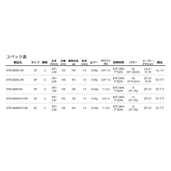 アブ・ガルシア ソルティースタイルシーバス STSS-962M-KR のスペック