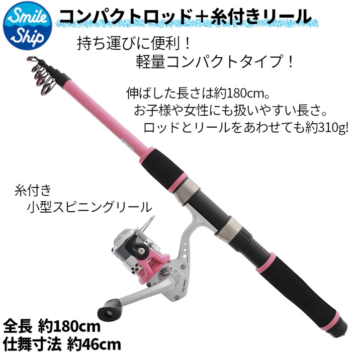 釣楽セット 海釣り入門 堤防サビキ コンパクトロッド+糸付きリール 上カゴ 180 ピンク #チョーラクセット について