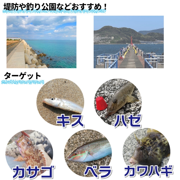 【代表対象魚】 シロギス ハゼ ベラ カサゴ アラカブ カワハギ クロダイ