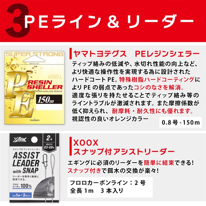 エギングをしてみたいけど何を買っていいか分からない! そんな悩みにお答えする釣具店スタッフが厳選した商品!釣りの経験はあるがエギングに初挑戦という方におすすめ!すぐにエギングが始められるセットです。