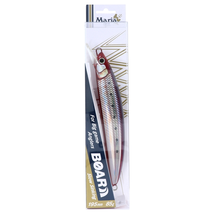 【ヤマリア/YAMARIA】荒磯を制するロックショア青物専用ジャーキングミノー。ロックショア青物ミノーに求める性能を問うと、1.逆風・荒天時でも釣りを成立させる「飛距離」2.高速で泳ぐターゲットに合わせた「高速リトリーブへの対応性能」を真っ先に思い描く方が多いことだろう。もちろん「ボアー」においてもこの2点を強化したのは言うまでもない。だが、「青物専用」としての性能を考えた場合、それだけで満足してよいものだろうか?「ボアー」開発にあたりMariaが追及したのは青物の捕食スイッチを入れる「ジャーキング時の挙動」である。ショートジャークにより得られる従来のミノーを凌駕する左右へのスライドダートが、追尾してくる青物の捕食性能を強烈に刺激しバイトを誘発させる。ロックショア青物専用ミノー「ボアー」があなたのプラッギングゲームの可能性を更に引き上げてくれるだろう。[マリア][BOAR]