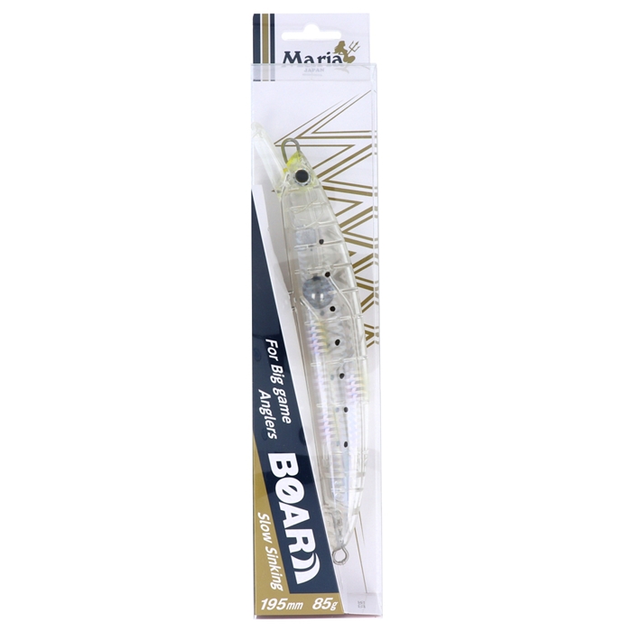 【ヤマリア/YAMARIA】荒磯を制するロックショア青物専用ジャーキングミノー。ロックショア青物ミノーに求める性能を問うと、1.逆風・荒天時でも釣りを成立させる「飛距離」2.高速で泳ぐターゲットに合わせた「高速リトリーブへの対応性能」を真っ先に思い描く方が多いことだろう。もちろん「ボアー」においてもこの2点を強化したのは言うまでもない。だが、「青物専用」としての性能を考えた場合、それだけで満足してよいものだろうか?「ボアー」開発にあたりMariaが追及したのは青物の捕食スイッチを入れる「ジャーキング時の挙動」である。ショートジャークにより得られる従来のミノーを凌駕する左右へのスライドダートが、追尾してくる青物の捕食性能を強烈に刺激しバイトを誘発させる。ロックショア青物専用ミノー「ボアー」があなたのプラッギングゲームの可能性を更に引き上げてくれるだろう。[マリア][BOAR]