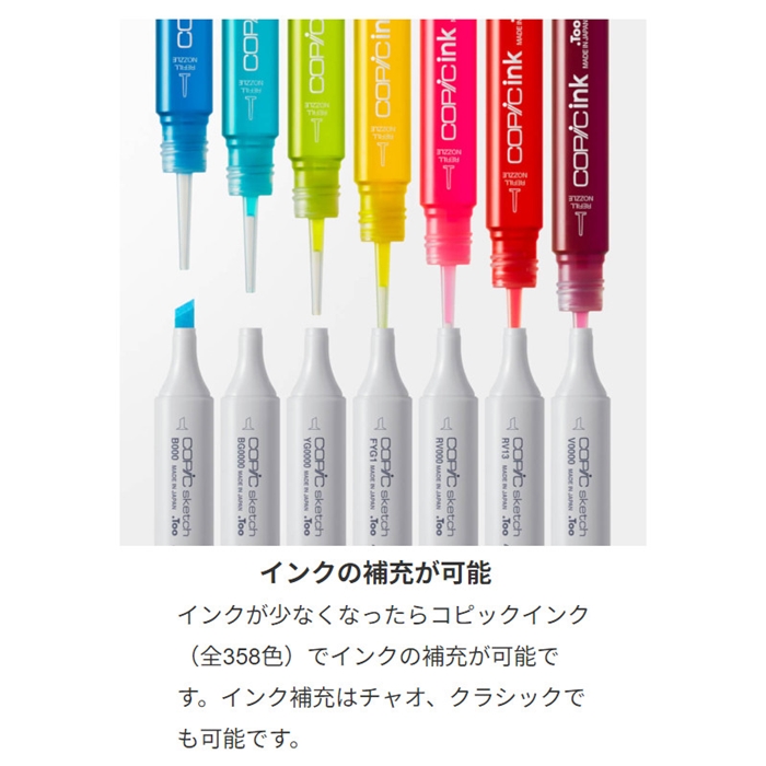 【コピック/COPIC】世界中で愛用される全358色のスタンダードモデル。デザイン、イラスト、アートなどジャンルを問わず多くのプロにも愛用されているコピックのスタンダードモデルです。[COPIC sketch]