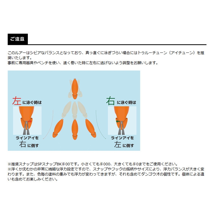 【スミス/SMITH】モチーフは草や泡。やる気・体力の少ないトラウトに対して同目線で「つまみ食い」させる『水中浮遊系』マイクロクランク。このダンゴウオに求めたのは、水中に漂う草の切れ端や泡と同じように自然界に溶け込む『水中同化がしやすいもの』であること。 こちらからそっとルアーを近づかせ、魚の目の前で気付かせ反応させる。逆に遠くにいる魚は気付かせないでおく、という発想です。 目の前に来て初めて喰い気を働かせ、移動距離を必要とせず安心して何度もその場でパクパクとくわえるイメージです。 それを再現しやすいものが無く、何とかそれを形にできないか。そんな興味心からダンゴウオは生まれました。魚の目の前に来やすいモデルを選んで、ゆっくり、そしてそっと巻いてみてください。[団子魚]