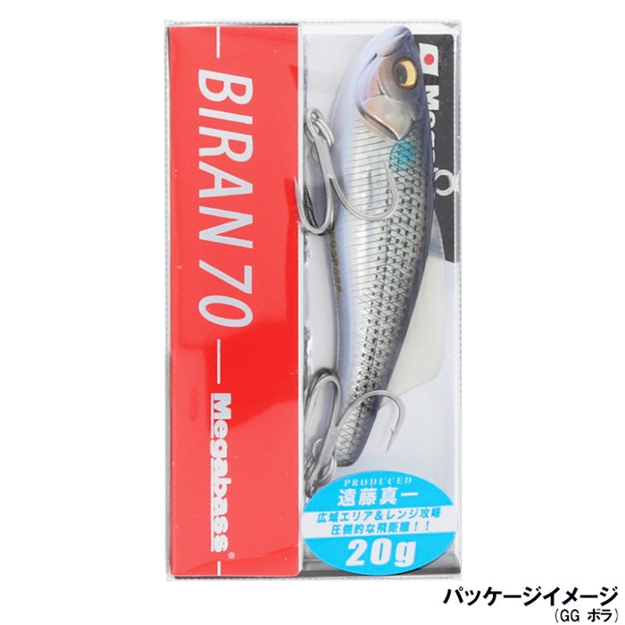 【メガバス/Megabass】遠藤真一プロデュース。カミソリレスポンス!前代未聞のハイピッチ!グラスファイバーフィンが、バイブを変える。最新のメガバス・ハイドロダイナミクスによってフォルミングされた、希代のソルトバイブ。ビラン70のボディ背部には0.8mm厚の強化グラスファイバー製のフィンをマウント。ABSボディの限界を突破し、水キレの向上化、浮き上がりの低減化、卓越したレンジキープ性能を実現しています。圧倒的な鋭いアクションレスポンスはアングラーの手元に伝わる感度を高め、ナチュラルなタイトピッチは、ライトタックルでも快適で軽快な巻き心地を実現。ABSボディとグラスファイバーフィンのハイブリッド構造は、耐衝撃性に優れた強固なボディフレームを構成し、ストラクチャーへのタイトな撃ちこみにも臆することなく使用可能。また、ウエイトの徹底した低重心化とフィンの整流効果により、着水時やフォール時のラインとフックの絡みトラブルを大幅に低減化させています。突き詰めた実釣性能を即座に体感できるビラン70は、使い勝手にこだわり抜いたソルトバイブの極地です。[BIRAN]
