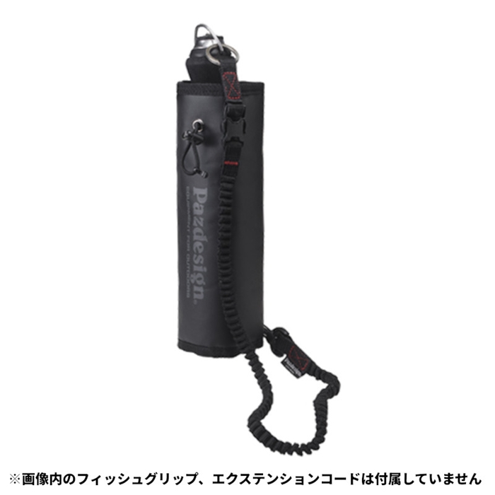 【パズデザイン/Pazdesign】大型フィッシュグリップにも対応したグリップホルダー。グリップが必要ないざという場面で素早く取り出せるシンプルな仕様にしました。本体上部のドローコードを絞る事で内部に「くびれ」ができ、それにより適度な引っ掛かりが生まれることで、スムーズな出し入れを妨げることなくグリップのホールド感をアップできます。また、底面はメッシュ仕様で排水、乾きも良好です。背面の取り付け箇所は面ファスナーを重ねて装着することでしっかり固定。本体下部のDカンは落下紛失を防ぐためのコイルコードやエクステンションコードを装着するのに便利です。[LIP GRIP HOLDER III]