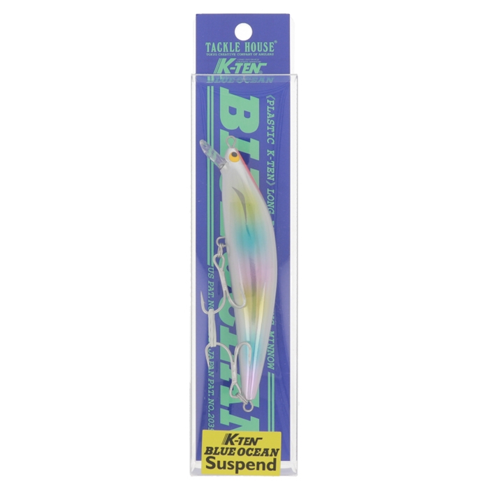 【タックルハウス/TACKLE HOUSE】もともとブルーオーシャンは、様々なフィールド状況に一本で対応できるように設計してあります。その為、少々の重量増ではアクション&性能を大幅に損なうことはありません。サスペンドにすることで、ノーマルモデル以上に一定泳層をジックリ攻めることが可能になり、様々な魚種で新たな攻略法を見い出せることでしょう。(淡水、汽水、海水、お好みでの微調整はフック交換等の方法があります。)[K-TEN BLUE OCEAN Suspend]
