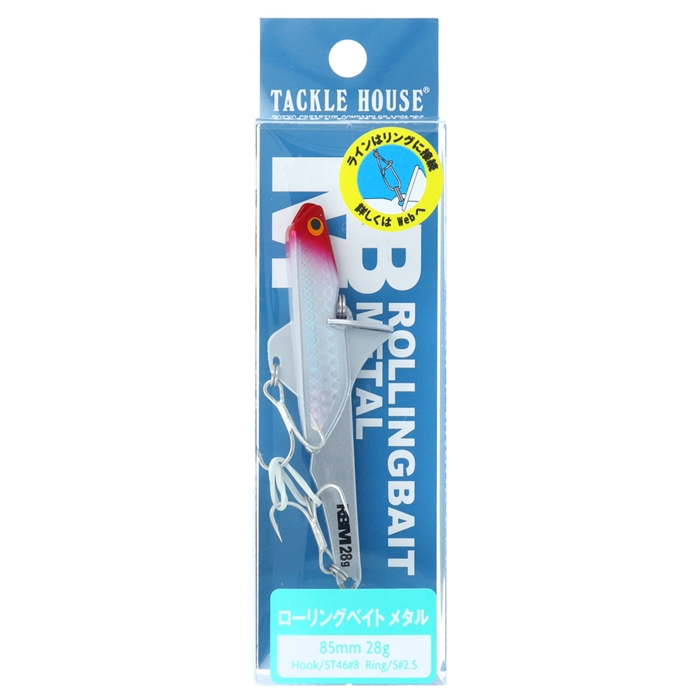 【タックルハウス/TACKLE HOUSE】ローリングベイトのアクションをメタルボディで実現。リトリーブ時の引き重りが少なく水平姿勢のローリングで多くのアングラーから支持されているローリングベイトのメタル版、それがローリングベイトメタルです。その泳ぎの特徴は、まさにローリングベイト譲り。いわゆるメタルバイブレーションの頭下がりの不自然な泳ぎとは異なり、メタルボディになっても、水平姿勢をキープして泳ぎます。ウェイトが重い分、飛距離もかせげ、これまでのポイントをさらに広く、深く探ることもでき、ターゲットもシーバスのみならず、青物等にも活躍します。[ROLLING BAIT METAL]