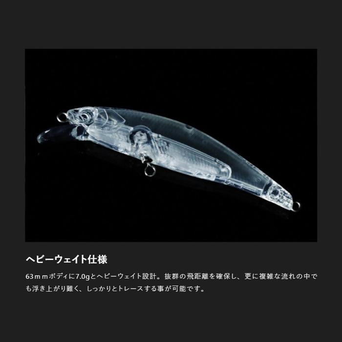 【ジャッカル/JACKALL】すでに本流や中流域で多数の実績を残すトリコロール流芯にダウンサイズモデルが登場。63HWは中流から本流域のアマゴやサツキマスに対応し、ベイトサイズが比較的小さい場合やハイプレッシャーなポイントで威力を発揮。ダウンサイズモデルながらこだわり抜いたボディシェイプで70HWにひけをとらないロングアプローチが可能です。泳ぎは70HW譲りの平打ち・ロールが強めにセッティングされたウォブンロール。小型サイズながらトゥイッチにはボディを翻しヒラを打つハイレスポンスなアクションで、低活性のトラウトにも瞬時にスイッチを入れることができます。フォールは、ユラユラ揺れながら落ちるシミーフォールアクションを踏襲。今まで寸前で食わなかった魚にも食わせの間を作ることが可能です。[TIMON Tricoroll流芯 63HW]