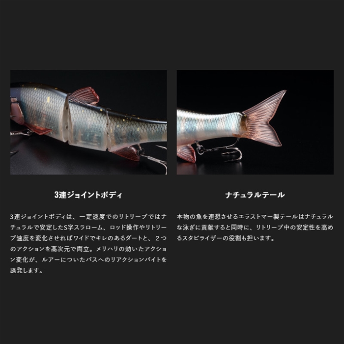 【ジャッカル/JACKALL】誘いのS字。食わせのダート。『ダウズスイマー』に、待望のダウンサイジングモデルが登場。3連ジョイントがもたらす生命感溢れるS字スラロームアクションがビッグバスを魅了します。[DOWZ SWIMMER 180SF][22new16]