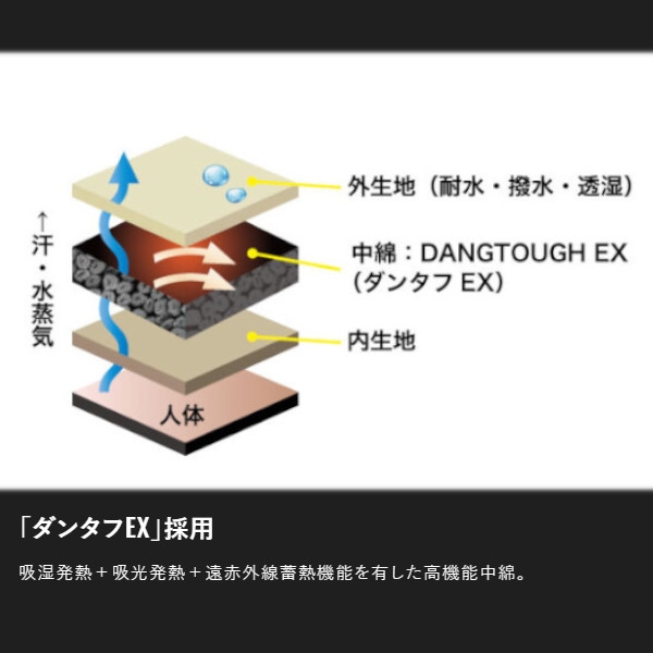 【ジャッカル/JACKALL】極寒環境での釣行を支える防寒ウェア「サーモフォースジャケット」が、さらなる進化を遂げてEXモデルとして登場。新たに採用した高機能中綿「ダンタフEX」により、従来までの吸光発熱と遠赤外線蓄熱に加え、吸湿発熱機能をプラス。[THERMOFORCE JACKET EX JA-A002]