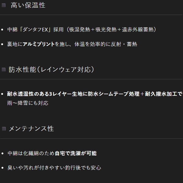 【ジャッカル/JACKALL】極寒でこそ真価を発揮する、最終防壁。[THERMOFORCE BIB EX PA-A004]