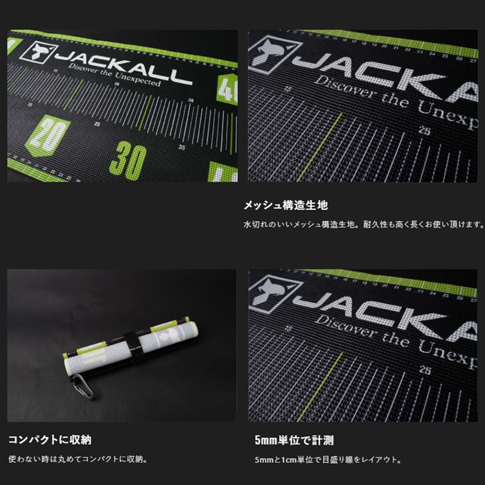 【ジャッカル/JACKALL】フィールドでの使いやすさとデザイン性を両立したオリジナルメッシュメジャーが登場。素材には耐水性と柔軟性に優れたメッシュ構造生地を採用。計量の際に本体を濡らしても、水はけがよく拭き取りも簡単。使用後はサッと丸めて収納でき、バッグやポケットにもすっきり収まります。目盛り部分には視認性の高い大型フォントを採用。ジャッカルのロゴ&グラフィックをあしらったデザインは、釣果写真も映える一枚です。先端にはアゴ当てプレートがあり、0位置の合わせも容易です。また、0位置と逆側(80cm側)は、ステンレスプレートを配置。プレートの自重で、片手でもメジャーを広げることができます。ブラックバスはもちろん、様々なルアーゲームに対応。本体にはカラビナを付属し、バッグなどにもワンタッチで取り付け可能です。[MESH MEASURE]