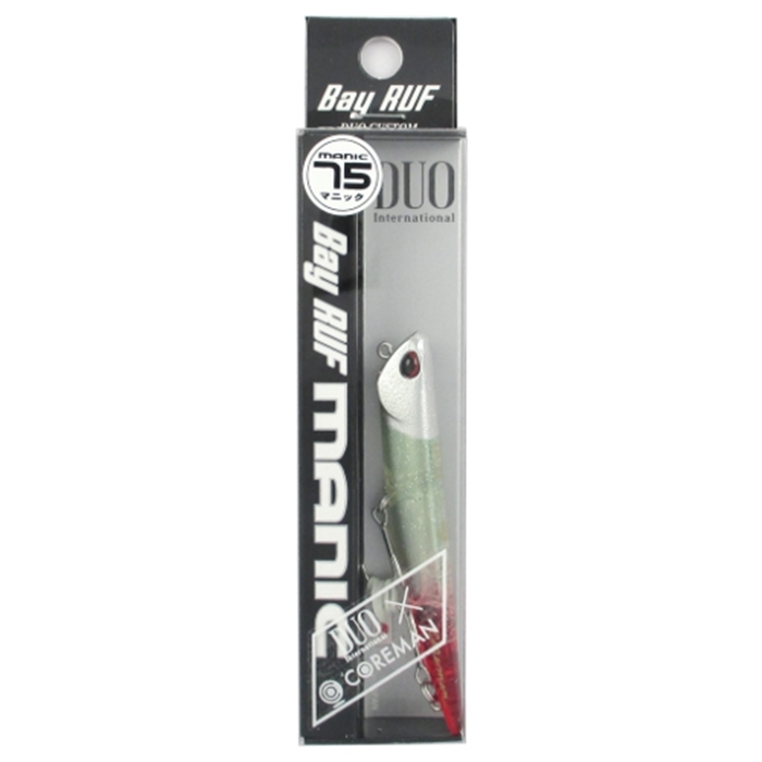 【デュオ/DUO】デュオ×コアマン魅惑のコラボレーション第三弾!シーバスゲームのマイクロベイトやバチパターンで無類の強さを発揮するマニック75をベースに、コアマンが誇る最強ジグヘッド・パワーヘッド+アルカリの実績カラーを再現したコアマンコラボレーションカラー。マニックムーブと魅惑のカラーが、シビアな状況下でも確実に喰わせます。フックには、コアマンのこだわりスペシャルフック「がまかつCTRB-MH#10」を搭載。[Bay RUF MANIC][バチ抜けルアー]