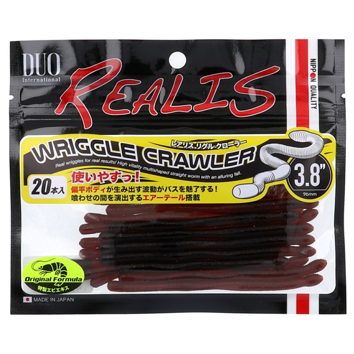 【デュオ/DUO】生命波動を生み出す 新基準ストレートワーム。『くねくねする』という意味を持つリグルクローラーのボディは、扁平ボディがタテ・ヨコに90度入れかわる特殊形状を採用。通常の丸い断面よりもアクション時の水の受け方が多彩で、より『くねくね』と生命感溢れる動きと波動を生み出します。高比重マテリアル&中空テールを備え、コストパフォーマンスにも優れた新基準ストレートワームの登場です。[REALIS WRIGGLE CRAWLER]