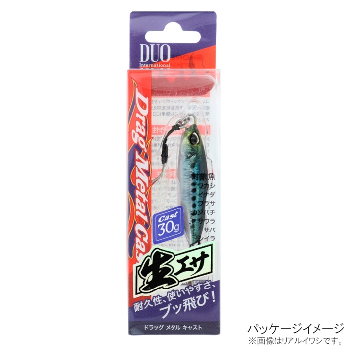【デュオ/DUO】(生エサカラー)生粋のプラグメーカーが導き出した、ショアジギングに対する一つの答え。新生「ドラッグメタル」プロジェクト、遂に始動!『ショアキャストモデル』ぶっ飛んで、効率よくスッとフォール、シャクってもただ巻きでもテールを振ってハイアピール!コンパクトに仕上げられたややファットなボディで抜群の飛距離をマーク。また安定したスイミング性能と水平スライドフォールを併せ持ち、ただ巻き&ジャーク時のリニアな反応と軽妙な操作感の両立を実現!ボディにはよりフィッシュライクなデザインを採用しました!波止や堤防、サーフ、河口とあらゆるフィールドで青物やその他ターゲットと対峙できる。[Drag Metal Cast]