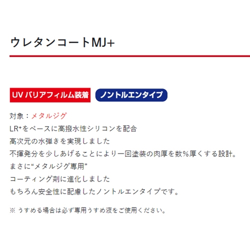 ●UV防止剤配合●シリコン配合●はっ水・防汚効果●アクション性能UP!●ノントルエン●メタルジグの表面保護・●高い透明度、強い塗膜、色止め効果