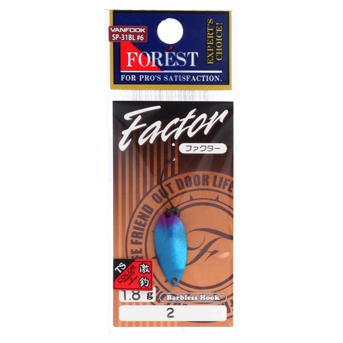 【フォレスト】ファクター、はMIU・PALの間に投げるためのスプーンとして開発しました。アクションは水平引き時に魚を寄せやすい波動のウォブンロールに調整しています。また水平引きのハイピッチなウォブンロールから角度を付けた立ち泳ぎへの移行時や、立ち泳ぎから水平引きに戻す時にバランスを崩さないように作り上げました。とにかく安定した泳ぎ姿勢を追求した釣れる、要因(ファクター)、を詰め込んだスプーンです。[Factor]