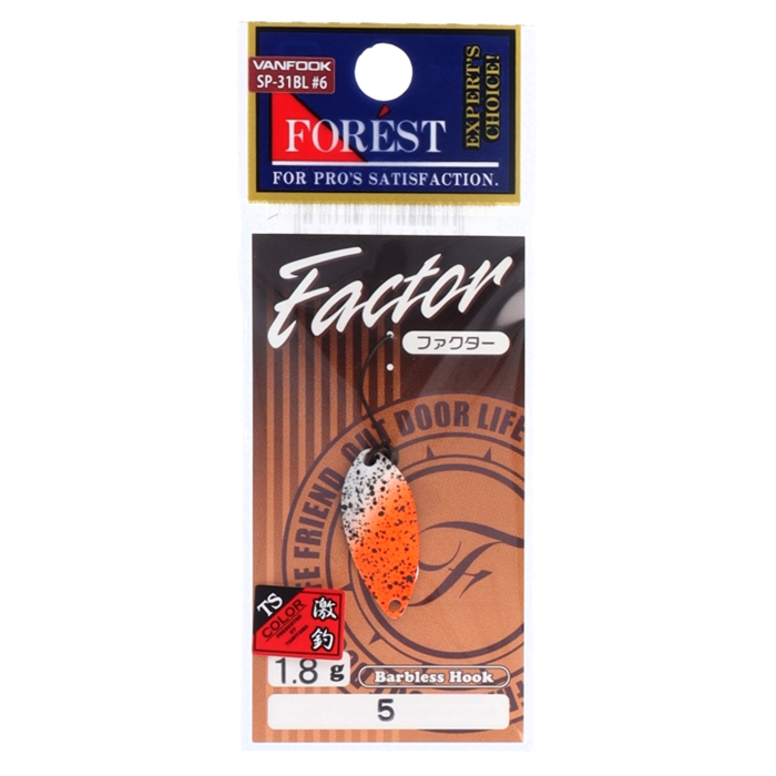 【フォレスト】ファクター、はMIU・PALの間に投げるためのスプーンとして開発しました。アクションは水平引き時に魚を寄せやすい波動のウォブンロールに調整しています。また水平引きのハイピッチなウォブンロールから角度を付けた立ち泳ぎへの移行時や、立ち泳ぎから水平引きに戻す時にバランスを崩さないように作り上げました。とにかく安定した泳ぎ姿勢を追求した釣れる、要因(ファクター)、を詰め込んだスプーンです。[Factor]