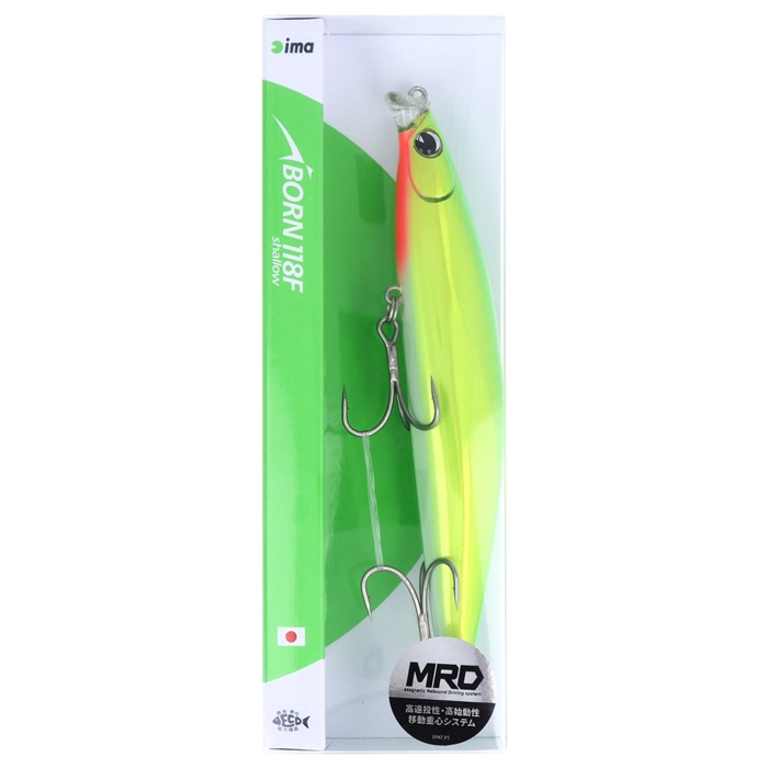 【アムズデザイン】進化したぶっ飛びスーパーシャローランナー。重心移動システム「MRD」初搭載!iBORN 118F shallow登場。シャロー レンジ攻略に特化した『誰が投げても、シャローを引けるミノー』がコンセプトのiBORNシリーズ。大きなベイトパターンにも対応し、さらに攻略の範囲を広げてくれる嬉しい118mmサイズが追加ラインアップ。さらなる飛距離アップと早い立ち上がりを叶えた重心移動システム「MRD」、初搭載ルアー。