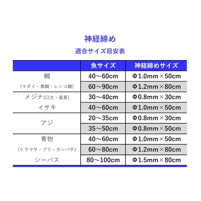 【ベルモント】魚の死後硬直を遅らせ、鮮度を保ちます。形状記憶合金で錆びず、魚が暴れても変形なし! 太さは4種類、Φ0.8、1.0、1.2、1.5mm。