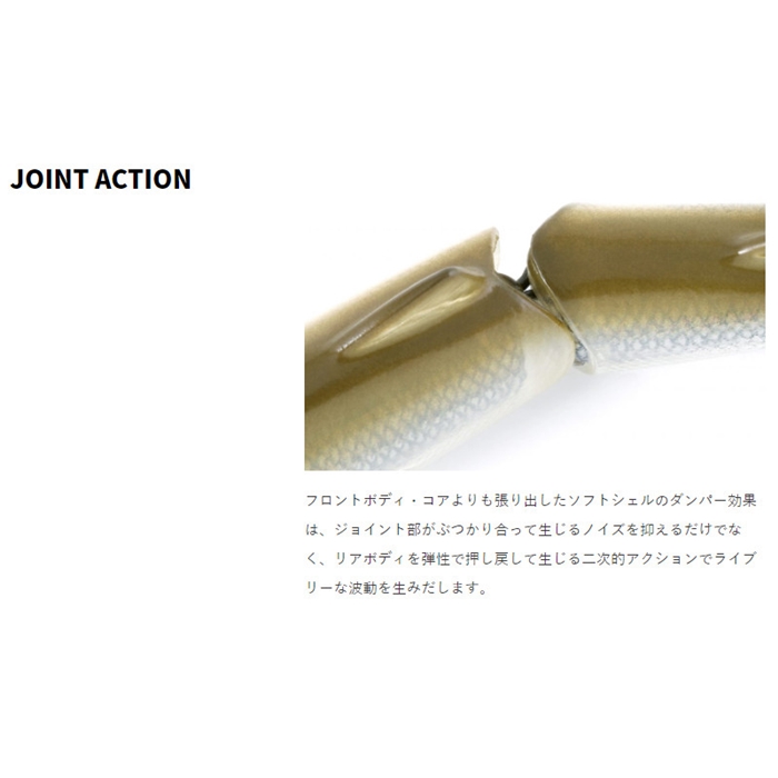 【デプス/deps】リアルフォルム クランキング。カバー回避能力に長けた『サイレントキラー』に、あらゆるフィールドに生息するベイトフィッシュサイズへとサイジングされリアルに作り込まれたフォルムにより、カバーに潜むフィッシュイーターに違和感なくバイトへといざなう115mmサイズのジョイントベイトです。ソフトシェルに包まれたボディはABS樹脂製中空コアボディが採用され、高浮力によるハイピッチでキレのあるクランキングアクションで、シャロークランクのような感覚でカバー攻略が可能。また瀕死のベイトフィッシュを演出するデッドスティッキングや表層引き、クリアアップ時にも効果的にバイトに持ち込むことができます。[new SILENTKILLER 115]