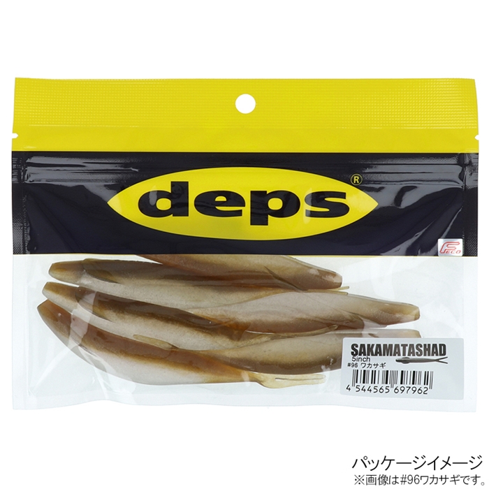 【デプス/deps】跳ね上がるダートアクション。ボディ両側面に備わるキールにより、ただフックセットするだけでベイトフィッシュが見せる跳ね上がるようなダートアクションを自然に生み出し、イージーにバスの捕食本能にスイッチを入れてくれるスティックベイトです。ノーシンカーでは、アユやハスが水面へ逃げ惑い、時折勢いよく水面から飛び出すような跳ね上がるダートアクション、スプリットショットやキャロライナリグのボトムレンジでも、バスに気付きボトムから突然現れ姿を隠すような跳ね上がるイメージでアクションすれば、’’サカマタシャッド’’の性能を発揮し、いとも簡単にバイトへと導いてくれます。[SAKAMATA SHAD]
