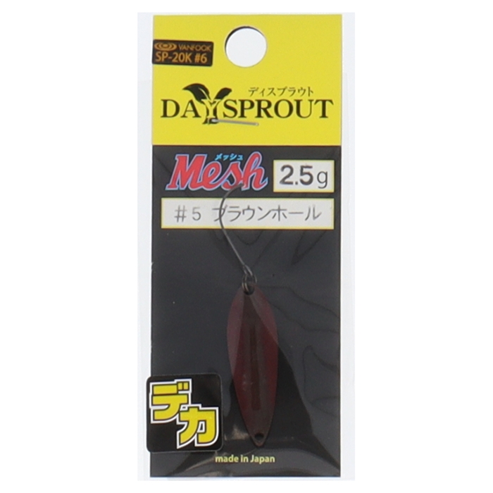 【ディスプラウト/DAYSPROUT】亀山和彦監修 イブシ銀の結晶が、異次元の扉をコジ開ける!メッシュでラッシュ!亀山和彦がスプーンに求めたのは流れを利用できるシルエット。日頃からエリアフィッシングを楽しむ上で彼のキーワードは常に流れ。放流後の少し落ち着いたタイミングからが一番の使い時と話す。軽量なわりに驚く飛距離を実現。水面操作では、水面から飛び出しにくく簡単に引き波を作り出すことが可能。そして、スリム形状が秘めたポテンシャルは、活性が落ちてしまった魚を再トライさせる要素を兼ね備えて、安定した結果へと導いてくれます。更に、「デカメッシュ」の呼び名で君臨する2.5gは遠投性に優れロッドを立てて構えるテンションフォールの立ち泳ぎで攻略するのが亀山流となる(笑)[Mesh]