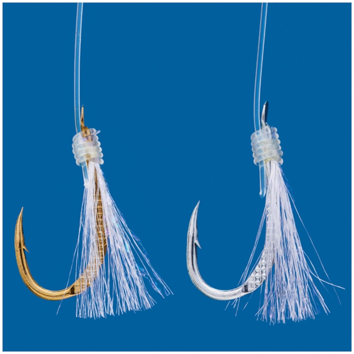 【がまかつ/Gamakatsu】『餌が付かないと始まらない!!』厳しい条件下、餌を付けるための小鈎仕掛。6号、8号という小鈎でありながら太ハリスに対応する落し込み専用鈎「マルチフラッシュ喰わせ」を採用。光の乱反射によりベイトの鱗を表現する鈎軸の『ワッフルプレス』にケイムラコートを施し、抜群のベイトの乗りを誇ります。ベイト付きの良い「ファイバー」と、ベイトになりにくい大きなアジやイサキを避けやすい「カラ鈎」の2タイプをラインナップ。
