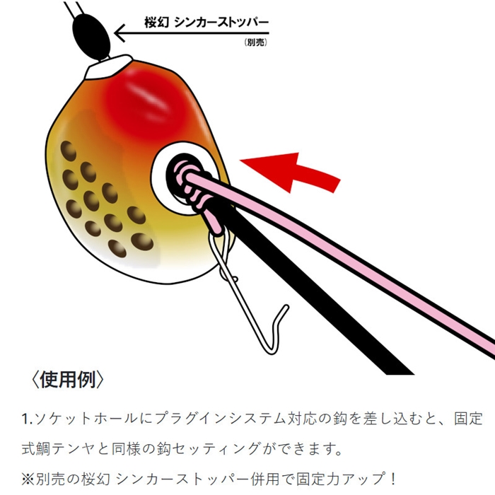 【がまかつ/Gamakatsu】フッキングは固定式同様でありながら、ファイト中は遊動式のバレにくさを実現したプラグインシステム。フックセット(プラグイン替え鈎)が交換できるので、常にフレッシュな鈎先で釣り続けることが可能です。シンカーは高比重タングステン合金、圧倒的なフォールスピードと抜群の着底感を誇ります。ワンタッチエビキーパーmini搭載。