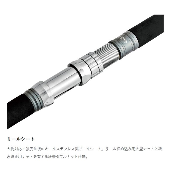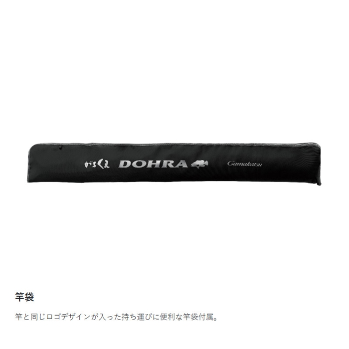 【がまかつ/Gamakatsu】磯釣り究極のターゲットであるクエ。その巨躯から放たれるパワーは暴力以外の何者でもない。そのパワーを真正面から受け止め、根や巣穴への突進を食い止める事がクエ竿には求められる。だが、あれほど暴力的な走りをみせるクエも、ひとたび喰い渋ると意外なほど神経質で、ただ強いだけのクエ竿では喰い込ませることができずアタリだけで終わってしまう。そこで、『がまくえ ドーラ』はクエ竿としての強さを残しつつ穂先の柔軟性にこだわった。仕掛投入や操作に影響がでない強度を確保しつつも、喰わせることを重視した柔軟な穂先に仕上げる事で、クエが餌をくわえた際の違和感を減らし、自然に喰い込ませるようにした。無論、喰い込み性能だけが特徴ではない。強度を確保すべく肉厚としたブランクを並継で継ぎあわせることにより隣り合うブランクに明確なパワー差を設け、曲がりが移行すると共に魚を締め上げる。食い込み直後の突っ込みから抵抗を許さず、根に潜られる隙を与えない。また、継番毎に適切なテーパーデザインを行うことで繊細な穂先から元竿へとスムーズに荷重を伝達し、餌をくわえ込んだクエが夢中になって走り、その走りにあわせてどこまでも舞い込み、そして、受け止め、浮かせる。質実剛健をコンセプトに生まれたがまくえドーラは黒とカーボンを基調としたシンプルで力強い意匠となっており、熟練の底物師はもちろん新参の若きクエ釣り師であっても違和感なく所有できるだろう。クエ竿に求められる実釣性能に忠実に、間違いなく使える物として作り上げた。10kg以下のクエを取りこぼすことなく、20kgオーバーをパワーで制し、あるいは、暴力的なパワーで知られるカンパチなどの大型回遊魚を捻じ伏せる。そんな巨魚との対峙にがまくえドーラは良き業物となるに違いない。[DOHRA][25new01]