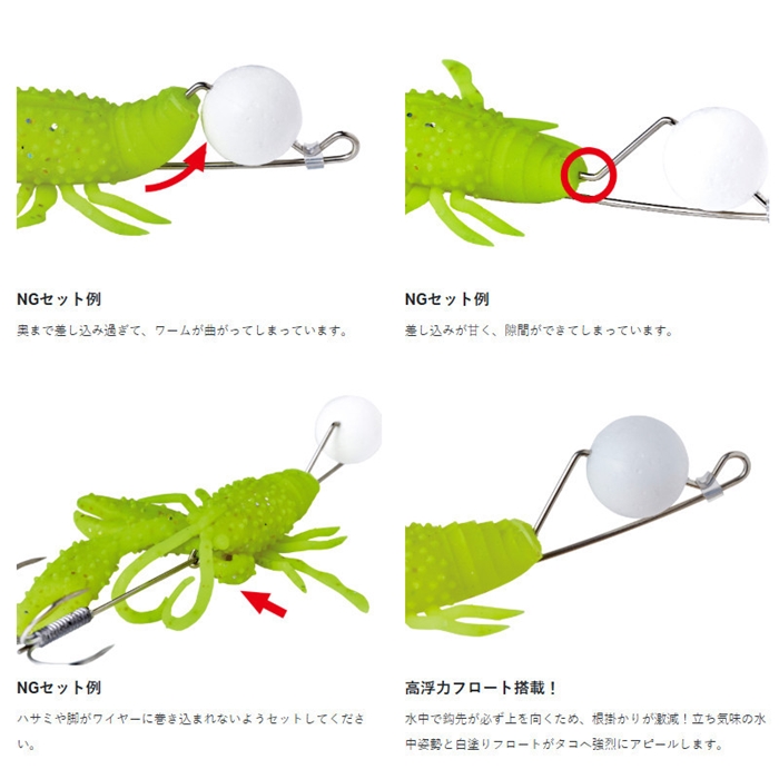 【がまかつ/Gamakatsu】水中で鈎先が上を向くフロートシステムで根掛かり激減。ノリノリクロージャンボを搭載し、立ち気味の水中姿勢とボリューミーなワームでタコに猛烈アピール!軽快な操作感で船はもちろん、おかっぱりでもお使いいただけます。鈎は高強度バーブレスフックを使用しているため、鈎先の鋭さが長時間持続し、掛かりも抜群です。