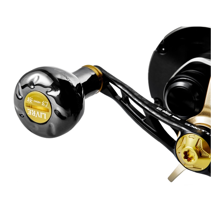 【がまかつ/Gamakatsu】全国に数ある鯛ラバエリアの中でも、最激戦区と呼ばれる地域には、並のタックルセッティングでは太刀打ちできないシーンが存在する。そうした過酷なフィールドで、エキスパートたちが信頼を寄せるハンドルがある。それが、リブレ社製「CRANK EDGE 115」と「EF30」のコンビネーションだ。115mmという絶妙なロングハンドルは円周軌道が生み出すトルク増幅効果により、一定速度でリトリーブ性能を高め、ブレのない安定した巻き感を実現する。加えて、大型丸型ノブ「EF30」が手のひらに吸い付くようにフィットし、デッドスローでのリトリーブ時の微細な情報も逃さず伝達。結果、ショートバイトの多い状況下でも明確に『出る』バイトとして手元に響く。[LUXXE×LIVRE CRANK EDGE115 桜幻SP][26new02]