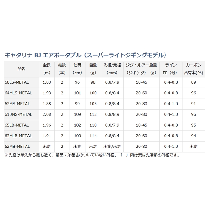【スーパーアウトレット】 ダイワ キャタリナ BJ エアポータブル(スーパーライトジギング) 62MB-METAL 21年追加モデル について
