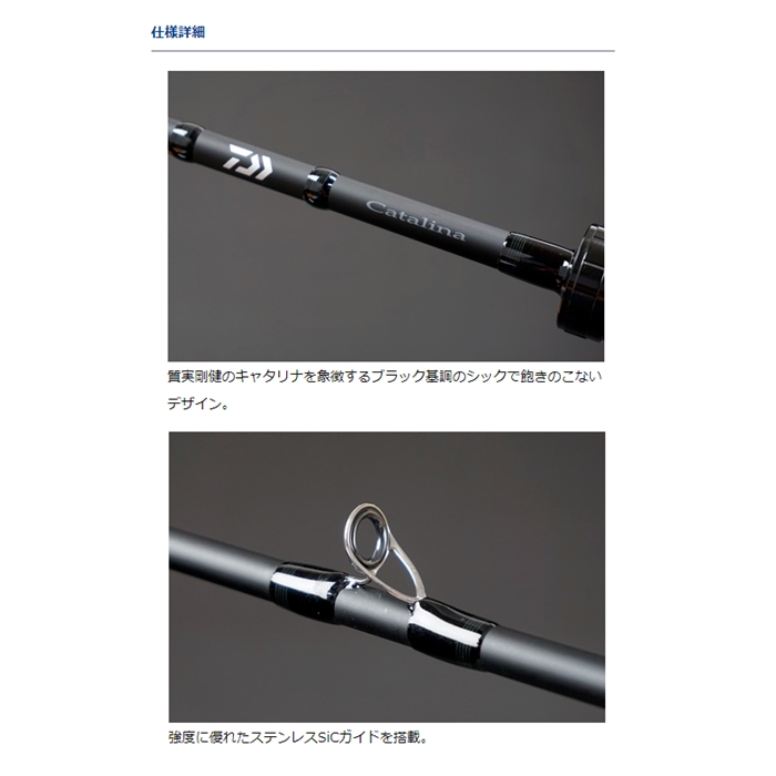 高感度メタルトップ仕様のスーパーライトジギングロッド。ティップ部は繊細なバイトをキャッチできる高感度メタルトップを搭載。ジグの操作性・ボトム感知を意識したセッティングを実現した。また粘強素材HVFナノプラスにX45を織り込んだブランクス、ジョイント部分はVジョイント構造を採用。センターカット2ピース仕様でも1ピース同等の強度、曲がりを実現出来ているため、想定以上の大物にも余裕をもって対応できる。[CATALINA BJ AP(SLJ)]