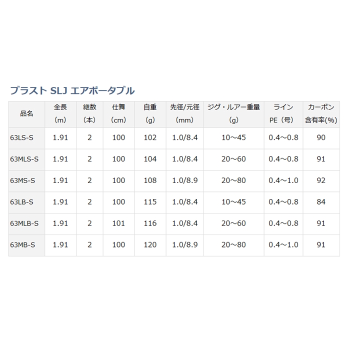 ダイワ ブラスト SLJ エアポータブル 63MLB-S [2021年追加モデル] について