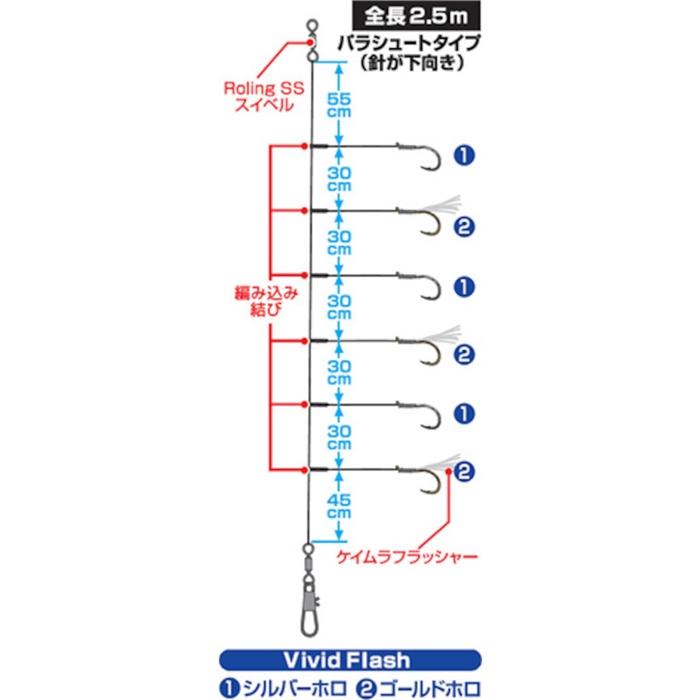 【グローブライド/ダイワ/GLOBERIDE/DAIWA】こだわりの落とし込み仕掛け「快適落とし込み仕掛けSS LBG」シリーズ 全長2.5mの6本針仕様。狙い棚集中モデル [KAITEKI OTOSHIKOMI SHIKAKE SS LBG]