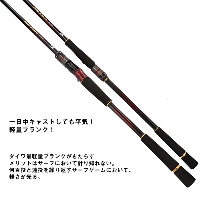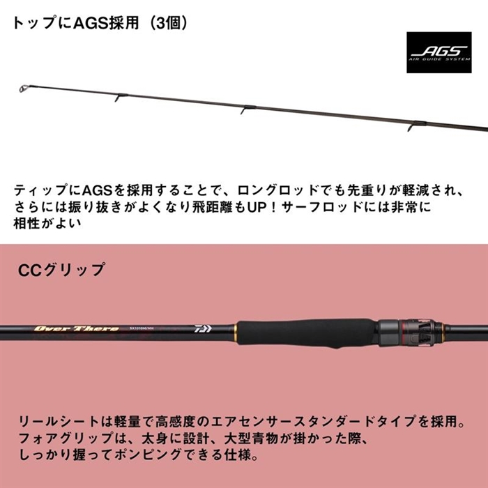 はるか沖へ、彼方へのブランドコンセプトを踏襲しながら、ダイワサーフロッド史上最軽量を実現した「OVERTHERE SX」。『AGS』や『SVF』といったダイワのカーボンテクノロジーで、圧倒的感度・操作性、そして爽快なキャストフィールを実現。長時間キャストを続けるサーフフィッシングでも疲労を抑え、アングラーのパフォーマンスを最大限維持し、釣果に繋げる。[OVERTHERE SX][26new01]