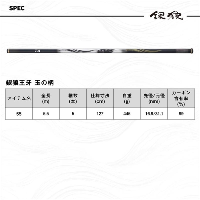 【26年1月入荷予定/ご予約受付中】 ダイワ 26 銀狼王牙 玉の柄 55・E について