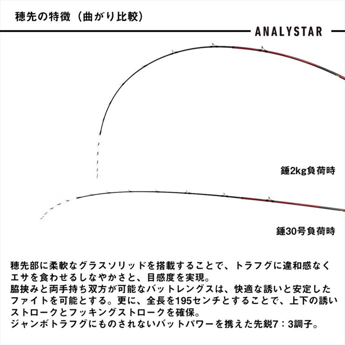 トラフグを確実に食わせて獲る!食わせと掛けのバランスを追求したトラフグ専用竿のスタンダードモデル[ANALYSTAR TORAFUGU 195][26new01]