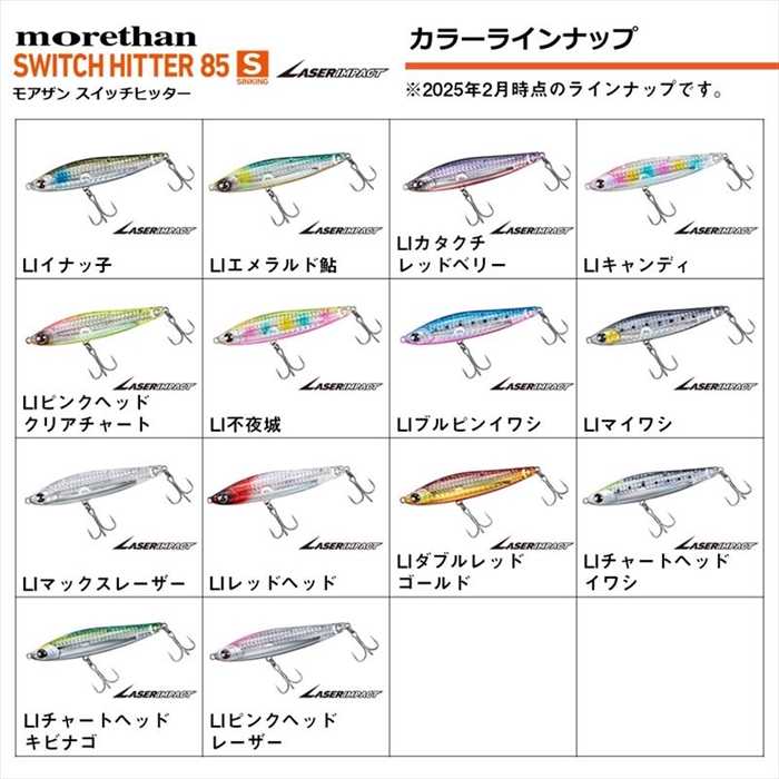 小沼正弥監修モデル。誰でも飛距離が出て扱いやすい!デイ、ナイト、エリアを選ばず良く釣れる!コンパクトぶっ飛びシンペン「スイッチヒッター」が、レーザーインパクト搭載でブラッシュアップ!「この輝きには釣れる理論(ワケ)がある。」レーザーインパクト(PAT.P)搭載。[MORETHAN SWITCH HITTER LASER IMPACT][25new16]