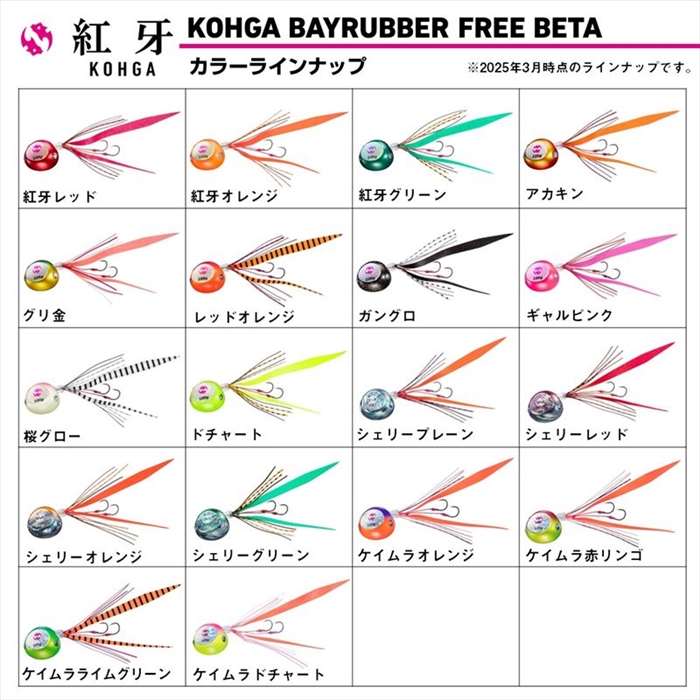 長きにわたり、タイラバを研究してきた結果たどり着いた実践型ユニット。実際に現場で何が必要で、本当に使いやすくて釣れるタイラバは何かを突き詰めて完成させたタイラバシステム。βシステムは、ネクタイやヘッド交換が劇的に速いだけでなく、大鯛の強烈な引きにも対応。ヘッドとの一体感で死角のないフッキングを約束。[KOHGA BAYRUBBER FREE β][ベータ][25new16]