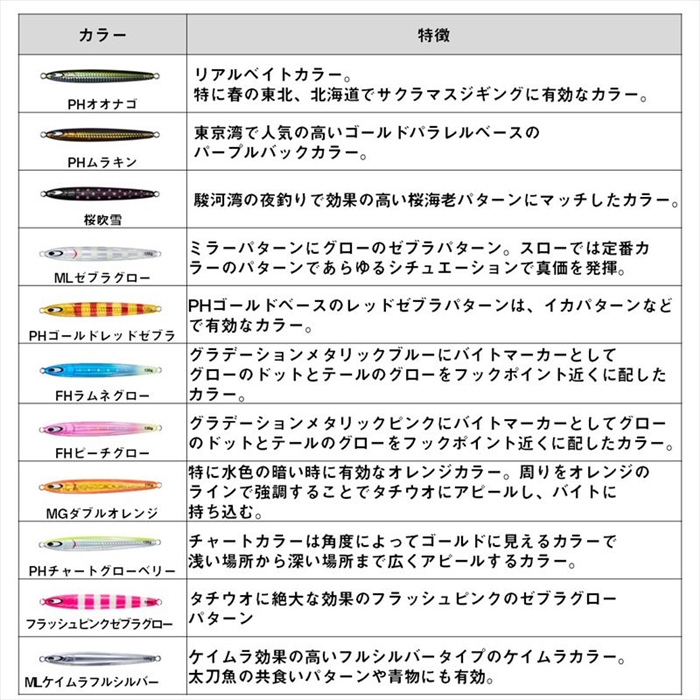 食い渋り時のタチウオの捕食行動を研究し、行き着いた非対称セミロング設計。スローピッチジャークによるタチウオゲームはジャークのアクションで素直に呼応しフォールでしっかりジグを見せて食わせるアクション。タチウオの鋭い歯にもはがれにくいHD塗装を施し対応。フックは鏡牙フックSSツインアシスト&チラシアシストがベストマッチ。(HD塗装:タチウオの鋭い歯にも耐える高耐久塗装処理)[KYOHGA JIG SEMILONG][25new16]