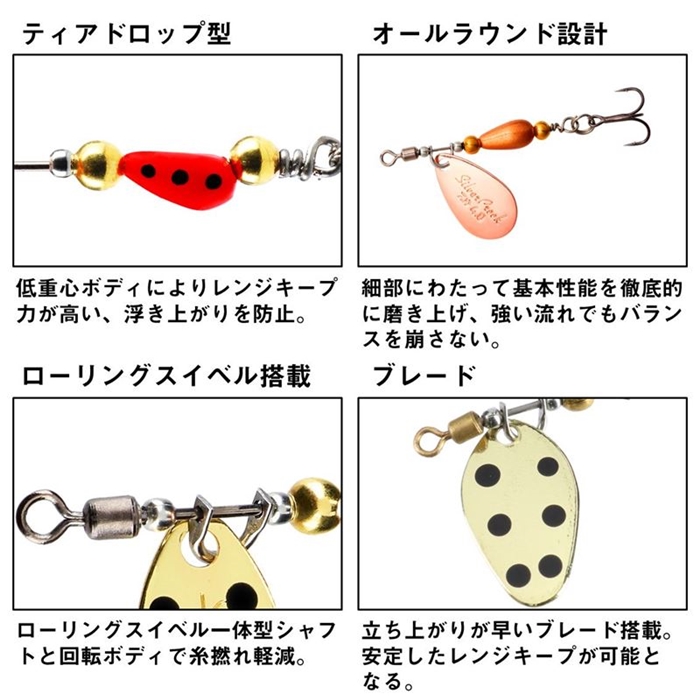 スピナーは『投げて巻く』、これだけでとにかく釣れる。シンプルであるがゆえに、ルアーの基本性能は誤魔化しがきかず大切になる。シルバークリークスピナーはこの基本性能を徹底的に見直した。細部にわたって基本性能を徹底的に磨き上げ、強い流れでもバランスを崩さないオールラウンド設計。ローリングスイベル一体型シャフトと中通しの回転するボディにより糸ヨレ軽減。[SILVER CREEK SPINNER][25new16]
