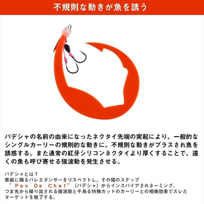 0.8mm極厚シートが生み出す強波動タイプのシングルカーリーネクタイ。シルエットの大きさと強波動により遠くの魚にもアピールし、先端の独自カットによる不規則な動きがスレた魚にも口を使わせる。[KOHGA UNIT-B SS PAS DE CHAT GOKUATSU][25new16]