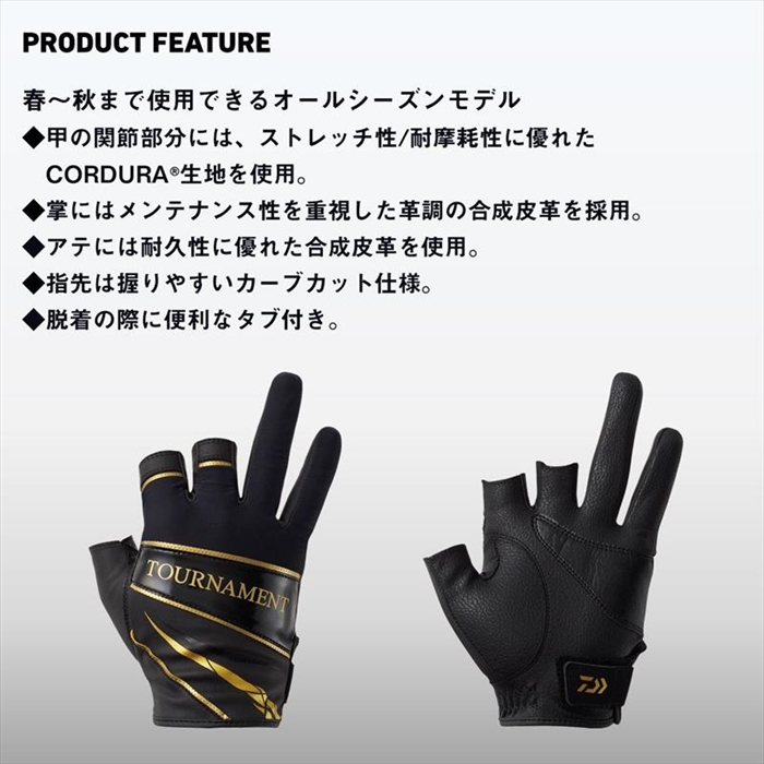 ダイワ DG-1225T トーナメントグローブ 3本カット M ブラック 3本切【ゆうパケット】 について