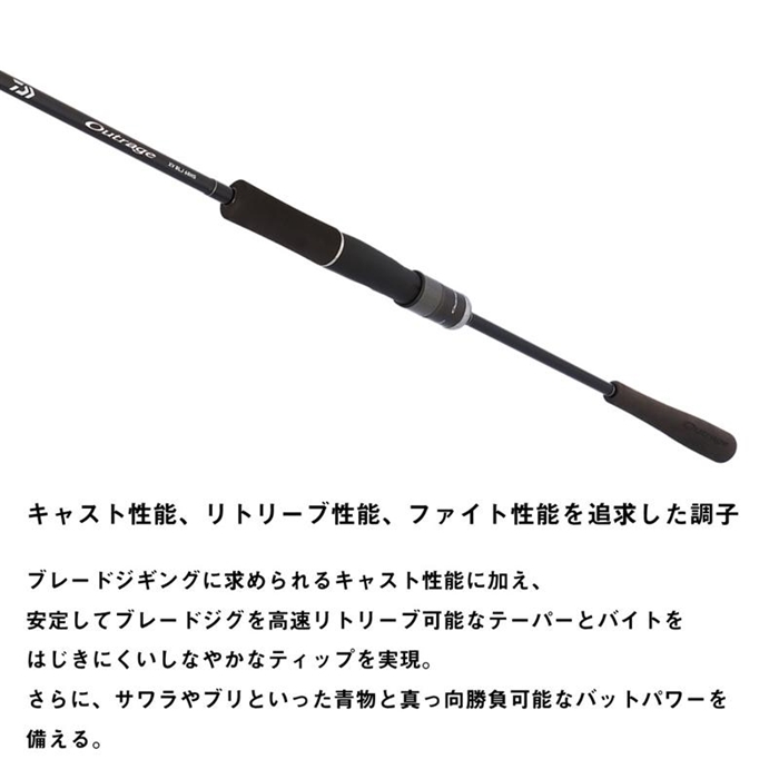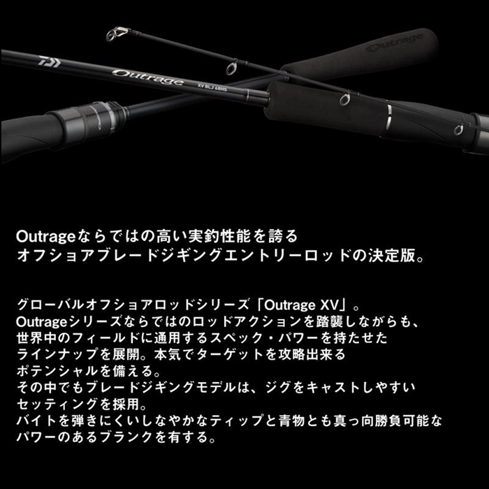 グローバルオフショアロッドシリーズ「OUTRAGE XV」。OUTRAGEシリーズならではのロッドアクションを踏襲しながらも、世界中のフィールドに通用するスペック・パワーを持たせたラインナップを展開。本気でターゲットを攻略出来るポテンシャルを備える。その中でもブレードジギングモデルは、ジグをキャストしやすいセッティングを採用。バイトを弾きにくいしなやかなティップと青物とも真っ向勝負可能なパワーのあるブランクを有する。[OUTRAGE XV BLJ][26new01]