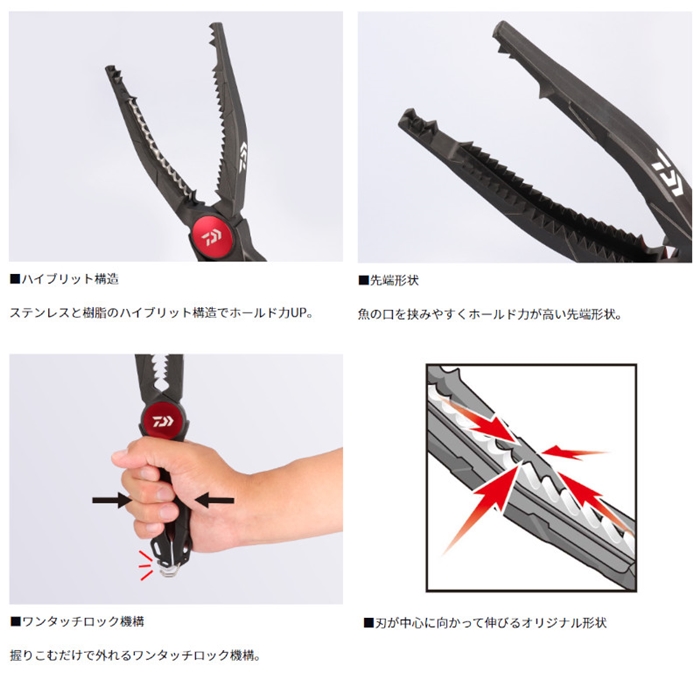 大型のアジやサバ・タチウオ等をガッチリ掴めるホールド幅約130mm ステンレス刃のハイブリット構造で更にホールド力UP![FISH HOLDER HD 295]
