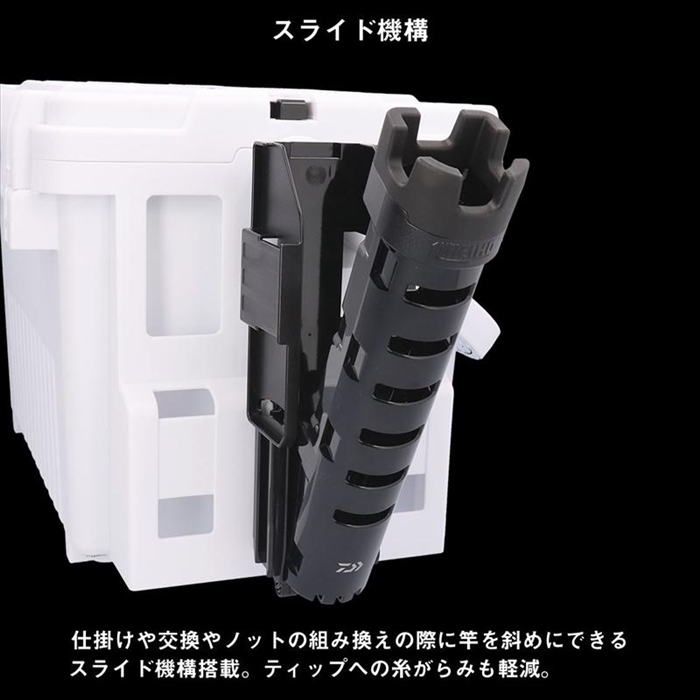 ネジ止め不要!スライド機構搭載のタックルボックスTBシリーズ用オプションパーツ。プロテクトキャップも搭載しロッドやリールを傷つけにくい。[TB SLIDE ROD STAND]