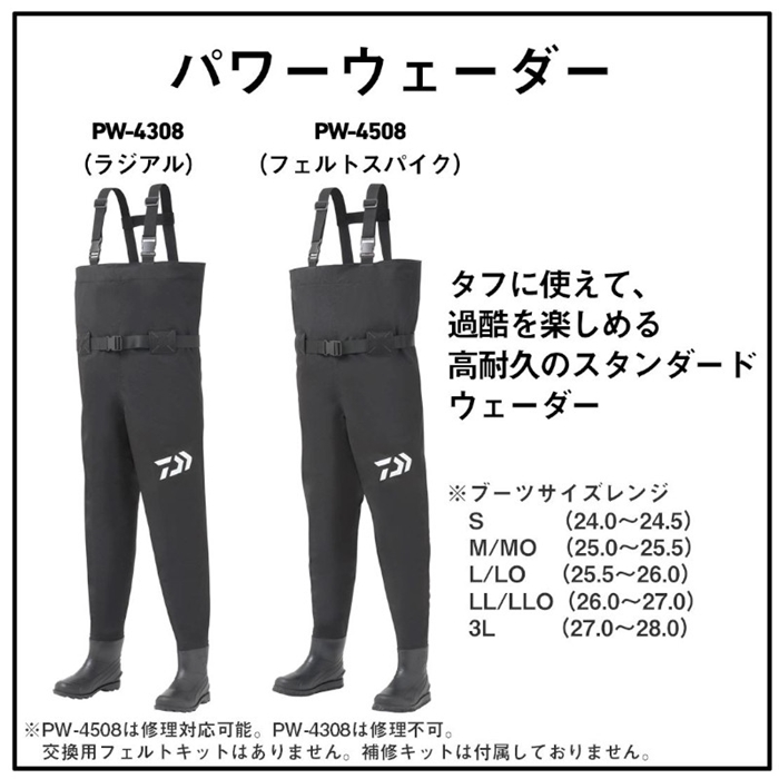 ダイワ PW-4508 (フェルトスパイク)パワーウェーダー LL (26.0-27.0cm) ブラック について
